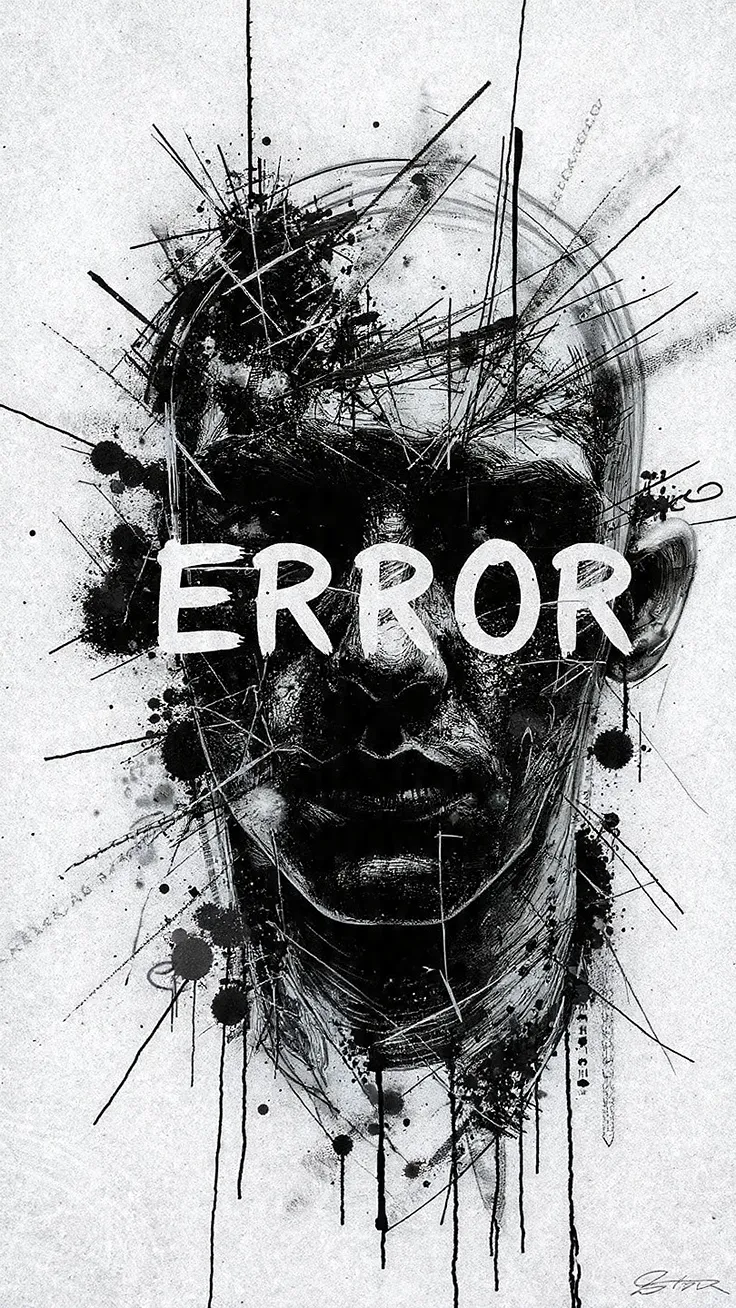 A bold collection of 3vertical wallpapers featuring an abstract black and white glitch-art human portrait — chaotic scratch lines, ink strokes, fragmented digital textures, and distressed typography...