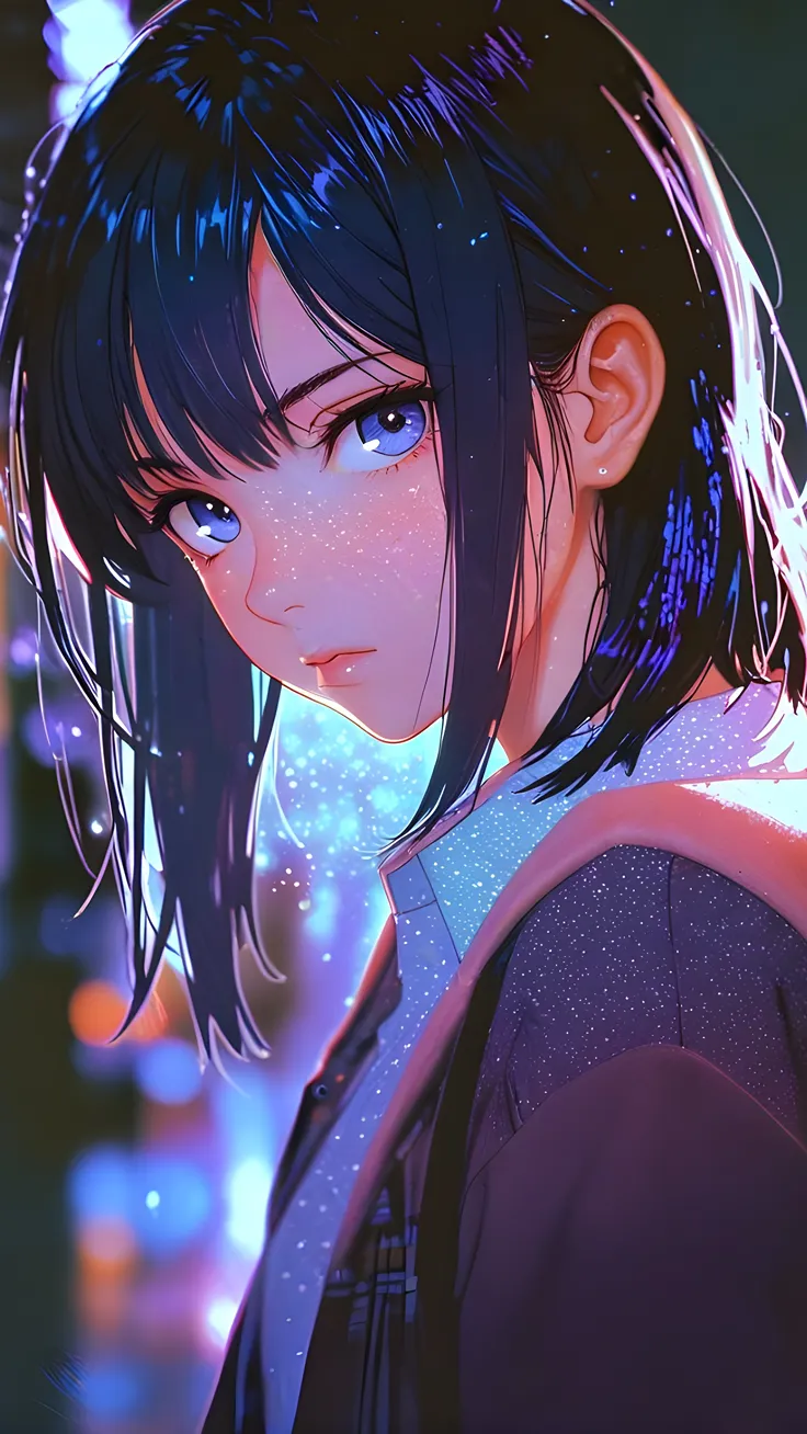 anime GIrL with blue theme ai
