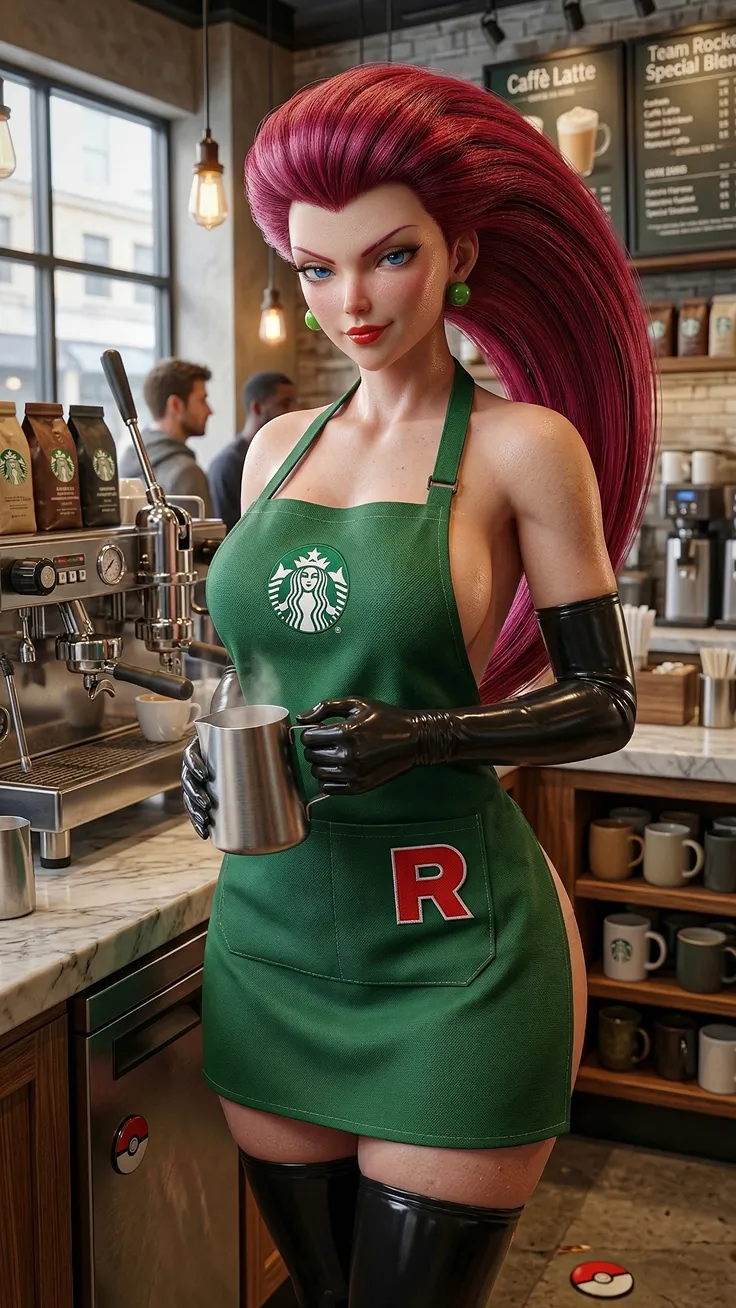 Jessie From pokemon as Starbucks employee