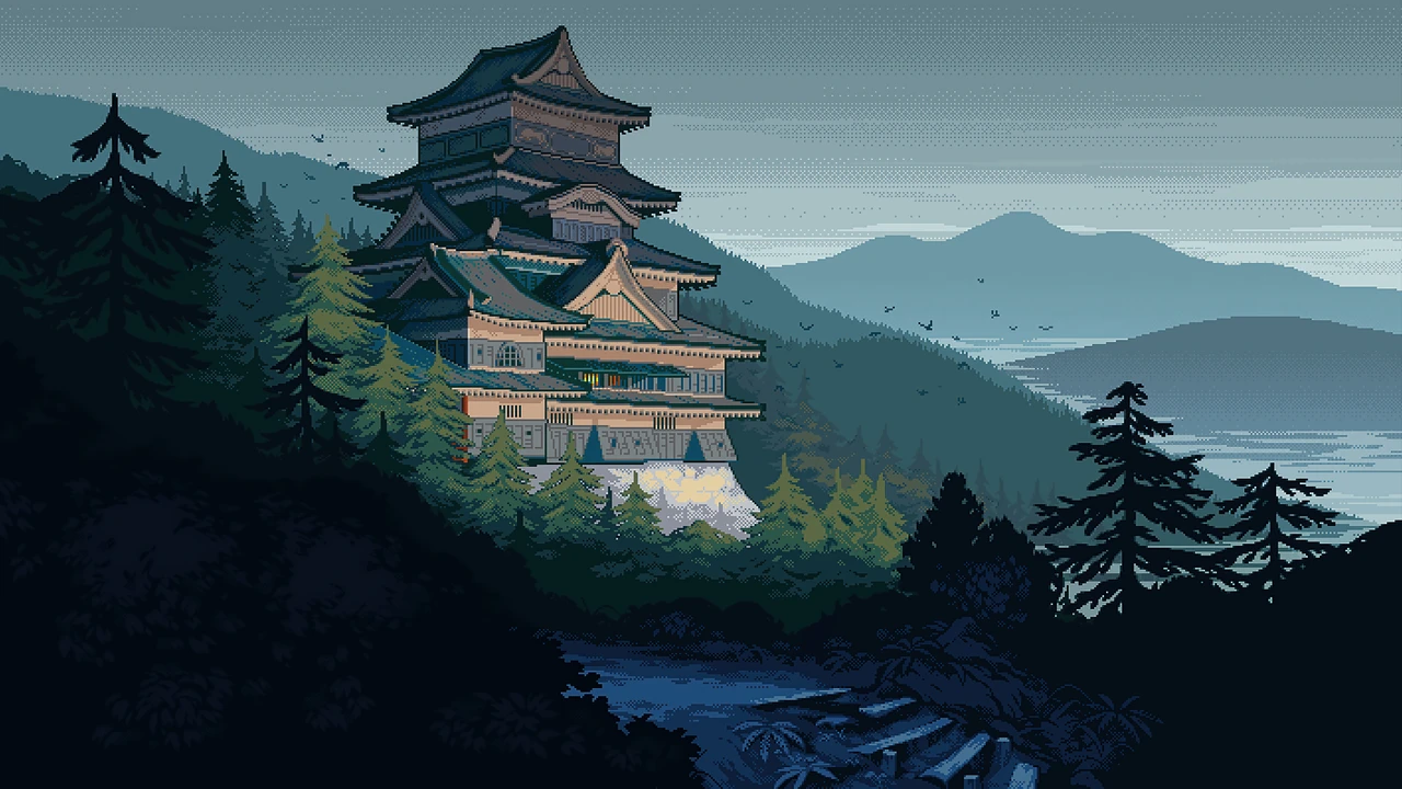 Japanese castle pixel digital art 4k wallpapermore...