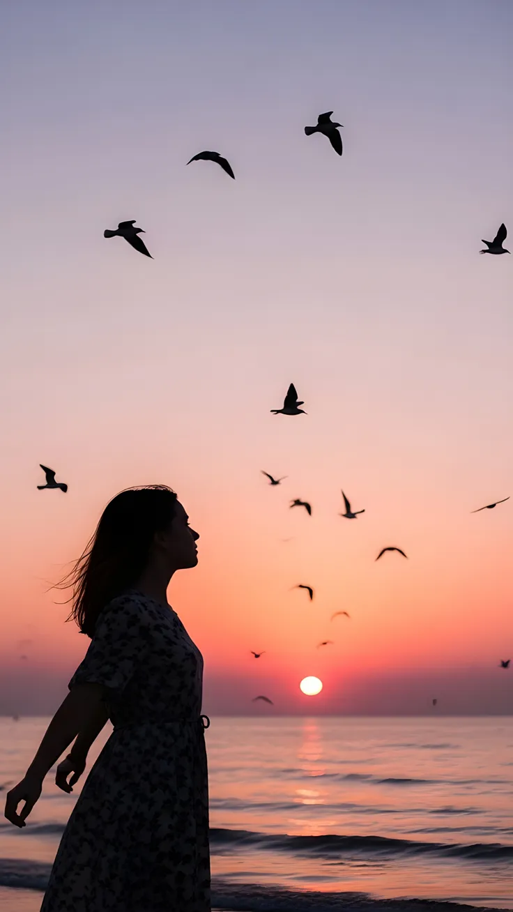 A sad girl trying to be happy with birds and sometimes alone