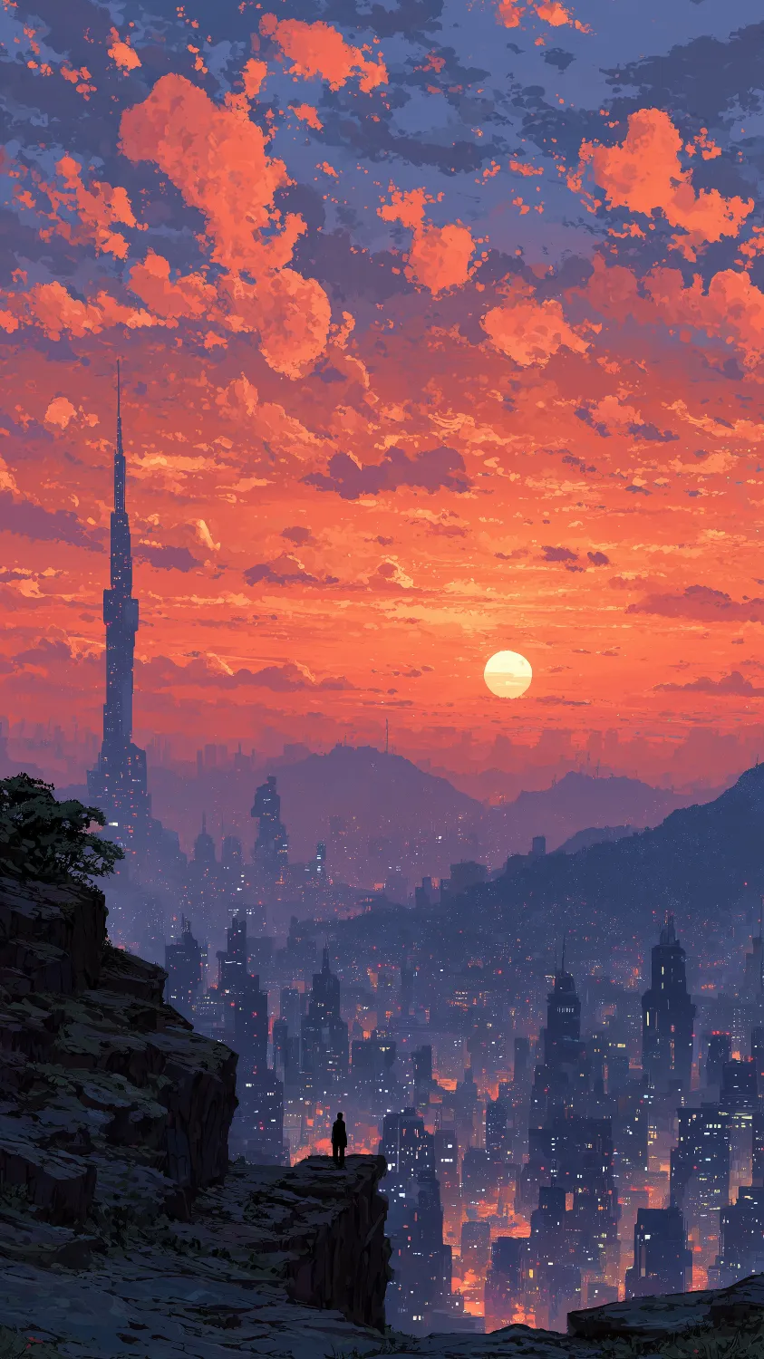 This Japanese anime-style illustration depicts a nighttime interior. In the center sits a white-haired anime girl, wearing a dark top and knee-high socks, her eyes bright blue. Surrounding her is a neon-lit room filled with a bed, bookshelves, and some furniture. Pink-purple light streaming in from the window creates a stark contrast with the cool tones of the room. The entire scene, imbued with cyberpunk and vaporwave aesthetics, creates a lonely and dreamy atmosphere.