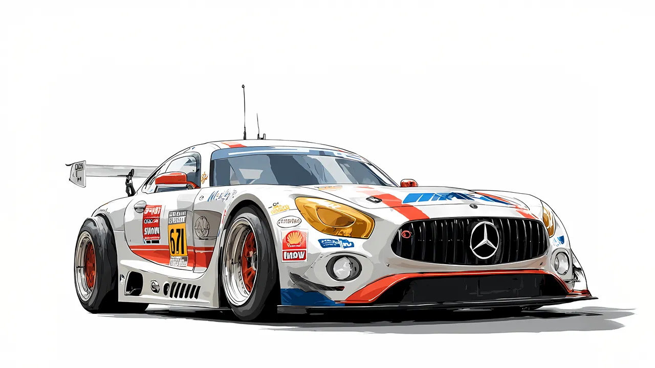 mercedes-Benz Race car minimal white backgroundmore...