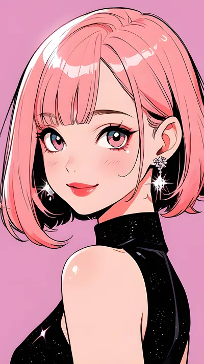 Pink bob hair anime girl-cute anime girlmore...