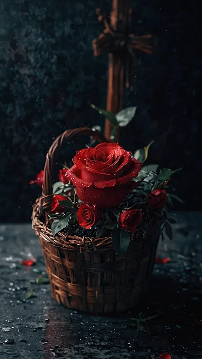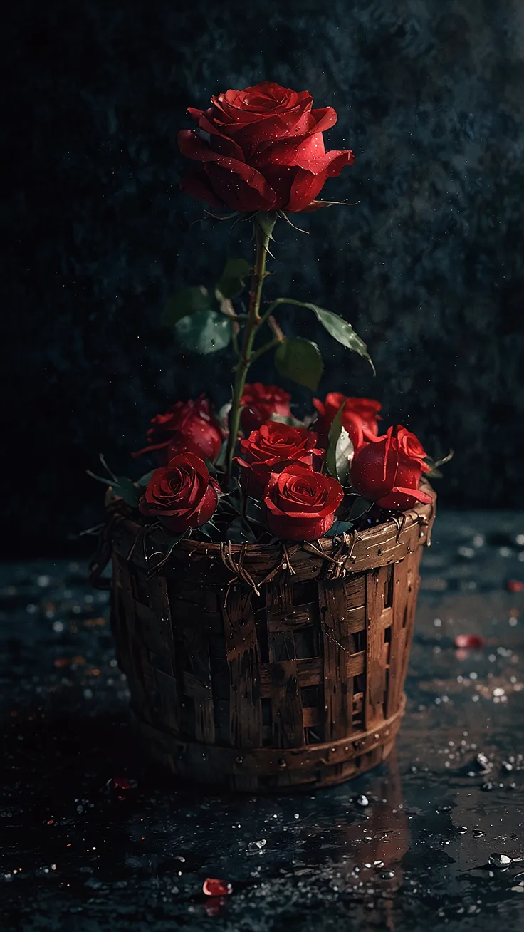 A beautiful pink rose covered in tiny water droplets sparkles against a dark, dreamy background.