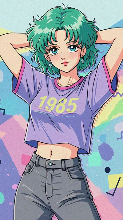 Step into a 1980s luxury dream with this vibrant retro anime-inspired set! Featuring a glamorous blonde in a glossy pink swimsuit, each illustration transports you to a sun-drenched world of palm...