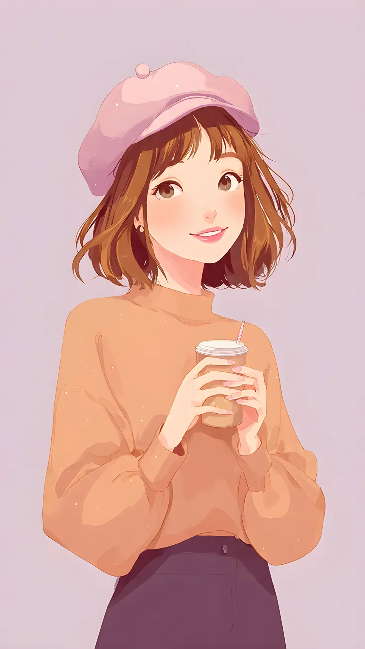 A soft pastel illustration of a girl enjoying a peaceful moment with a warm drink. This artwork captures gentle colors, calm energy, and a dreamy aesthetic vibe. Perfect for wallpaper lovers who...