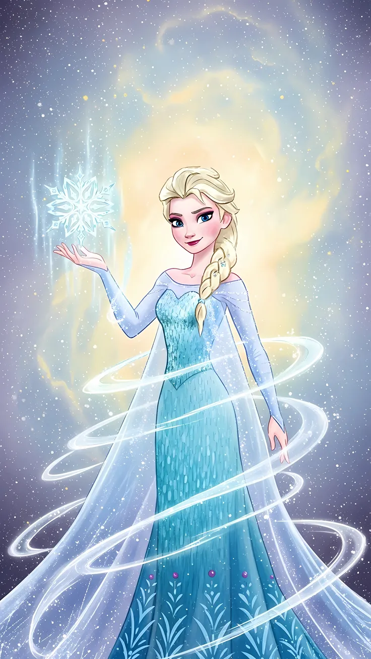 A celestial winter queen standing beneath the cold shimmering night, glowing with pure icy light. ❄️✨ Her frozen aura turns silence into magic, and the entire scene feels like a moment suspended in...