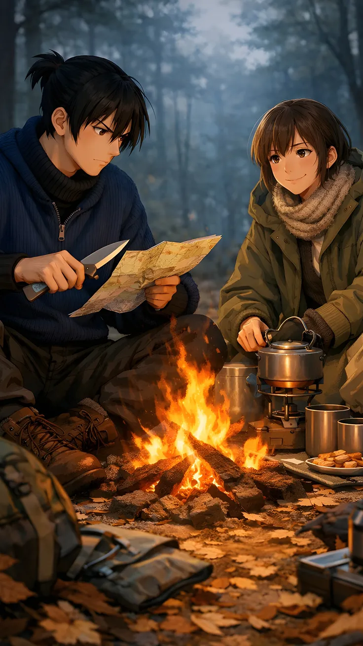 Anime fan art of akiyama aki (yuru camp) and Aki Hayakawa (cahinsaw man)